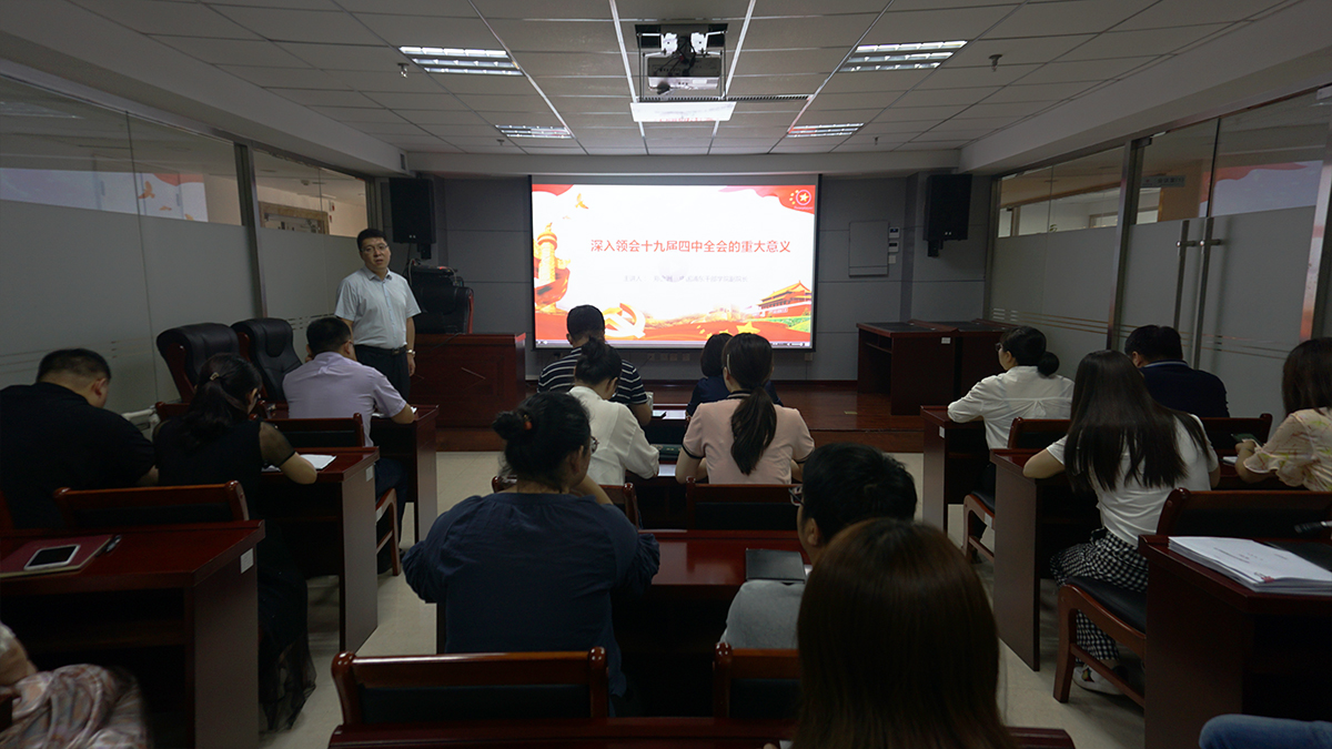 为深入学习贯彻党的十九届四中全会精神,切实把广大党员干部职工的思想和行动统一到习近平总书记重要讲话和党中央决策部署上来,根据市委组织部《关于印发承德市开展县处级领导干部党的十九届四中全会精神学习培训实施方案的通知》要求,米兰买球·(中国)官方网站切实做好中层及以下干部培训工作,确保培训全覆盖。