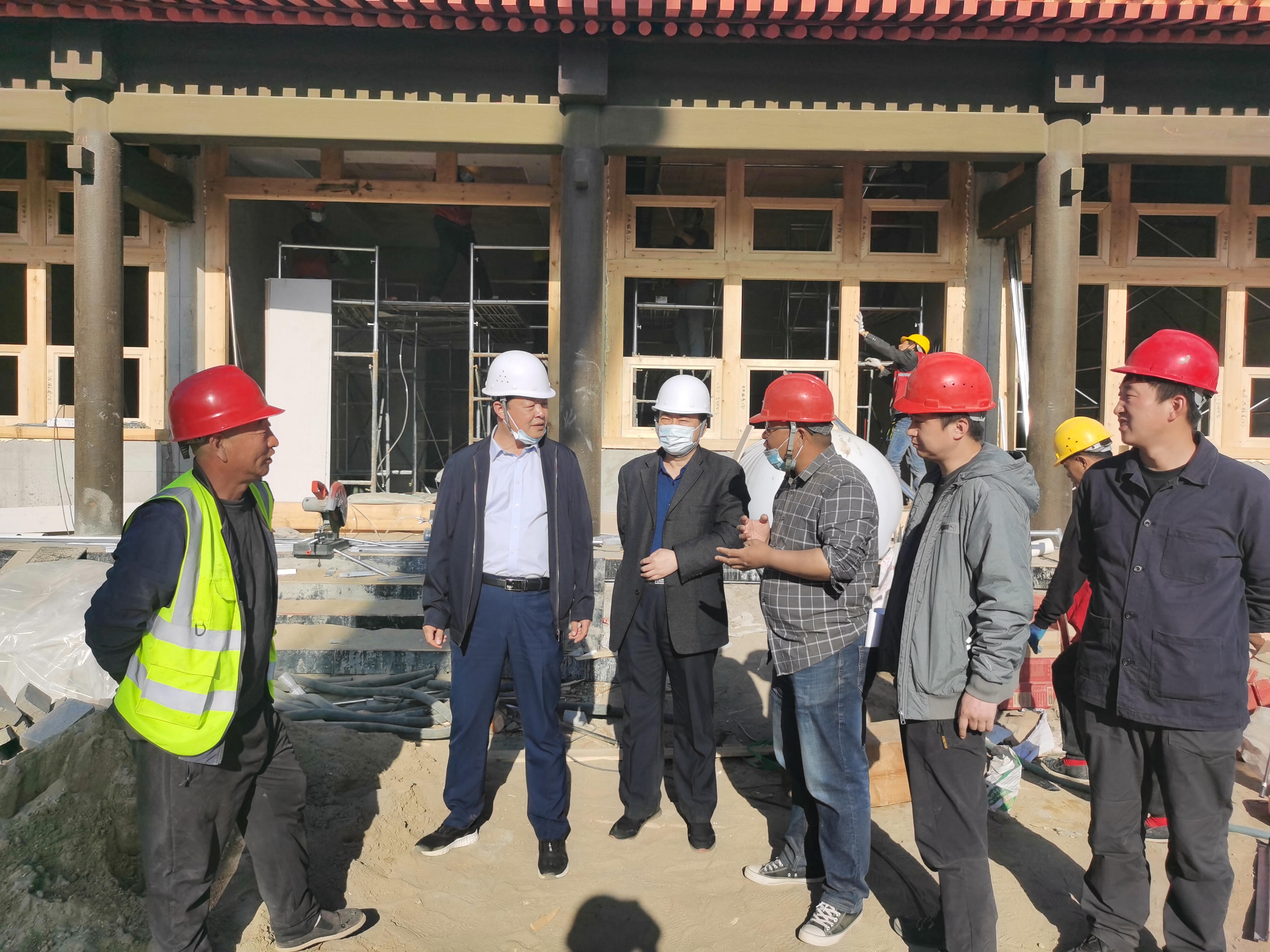 2021年5月1日,集团公司总经理徐俊儒、副总经理王京围一行赴雄安郊野公园承德展园项目建设工地进行实地督导,并于当晚参加了建设项目调度例会。会上徐俊儒首先代表甲方向参与工程项目建设的监理人员、项目管理人员、工程造价人员及山西二建、鸿博公司等各工种施工人员致以五一国际劳动节日的祝贺。