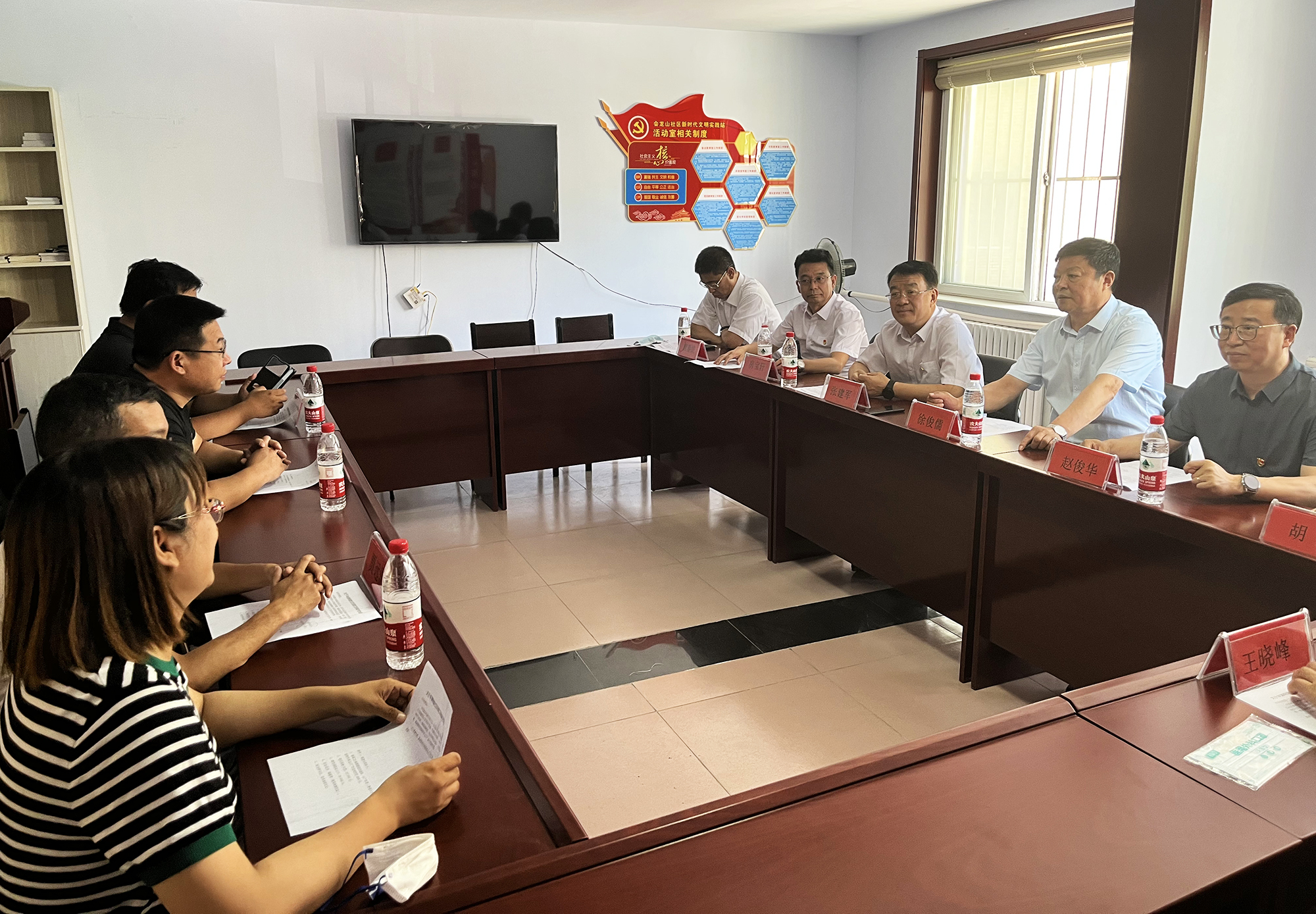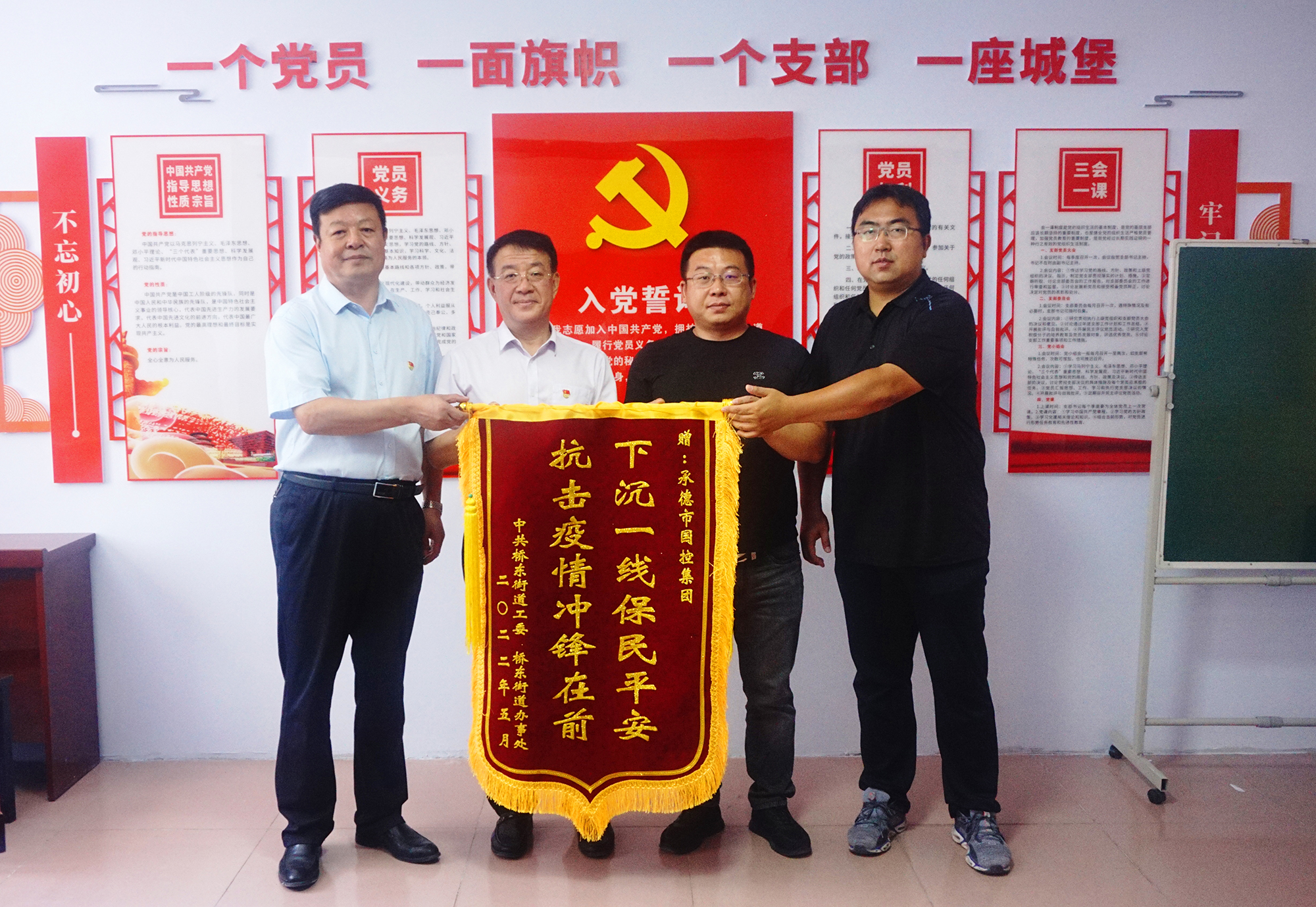捐赠仪式后,米兰买球·(中国)官方网站领导班子与桥东街道、会龙山社区主要负责人,就结对帮建工作进行座谈,详细了解了创城工作开展情况、存在问题及下一步打算,针对社区基础设施不完善、公共停车泊位施划不合理、楼道杂乱和小广告乱贴等问题,研究制定了具体举措。会上,为感谢米兰买球·(中国)官方网站在抗击疫情和结对帮建工作中的大力支持,桥东街道、会龙山社区向集团公司赠送了“下沉一线保民平安、抗击疫情冲锋在前”锦旗。