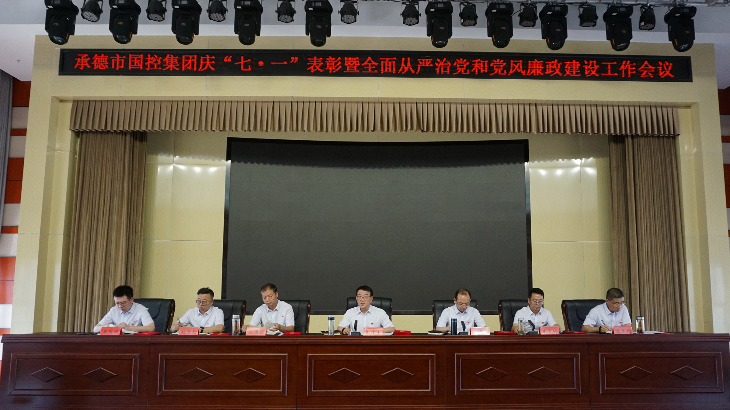 6月30日,米兰买球·(中国)官方网站组织召开庆“七一”表彰暨全面从严治党和党风廉政建设工作会议。集团公司党委书记、董事长张建军主持会议,领导班子全体成员、集团公司本部全体职工、子公司中层以上人员及党员参加会议。