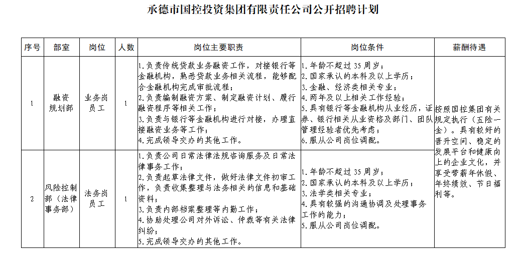 米兰买球·(中国)官方网站(以下简称“米兰买球·(中国)官方网站”)成立于2015年9月,是市委、市政府按照“市场化配置、集约化整合、企业化经营、资本化运作”的原则予以组建的国有独资企业。米兰买球·(中国)官方网站隶属于承德市人民政府管理,注册资本3亿元人民币。现因米兰买球·(中国)官方网站业务发展和工作需要,委托承德鸿雅伟业人力资源管理咨询有限公司(简称“鸿雅人资”)面向社会公开招聘工作人员,具体招聘信息公告如下: