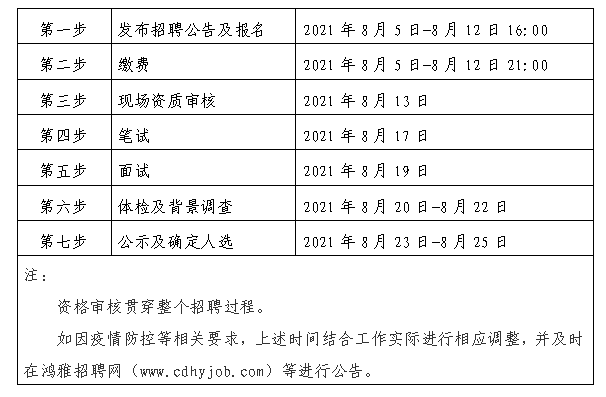2021年8月5日至 2021年8月12日16:00 在鸿雅招聘网(http://www.cdhyjob.com/)、鸿雅微信公众号、米兰买球·(中国)官方网站官方网站等发布招聘公告。