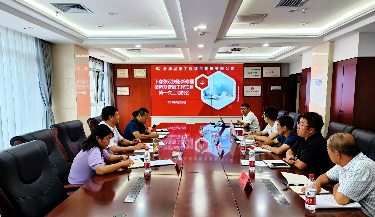 2022年8月9日上午,承德市国瑞置业有限公司在国控大厦十二层第一会议室组织召开下穿张双铁路新修框架桥及管道工程项目第一次例会。市米兰买球·(中国)官方网站总经理徐俊儒、国瑞置业公司董事长胡杰出席会议。